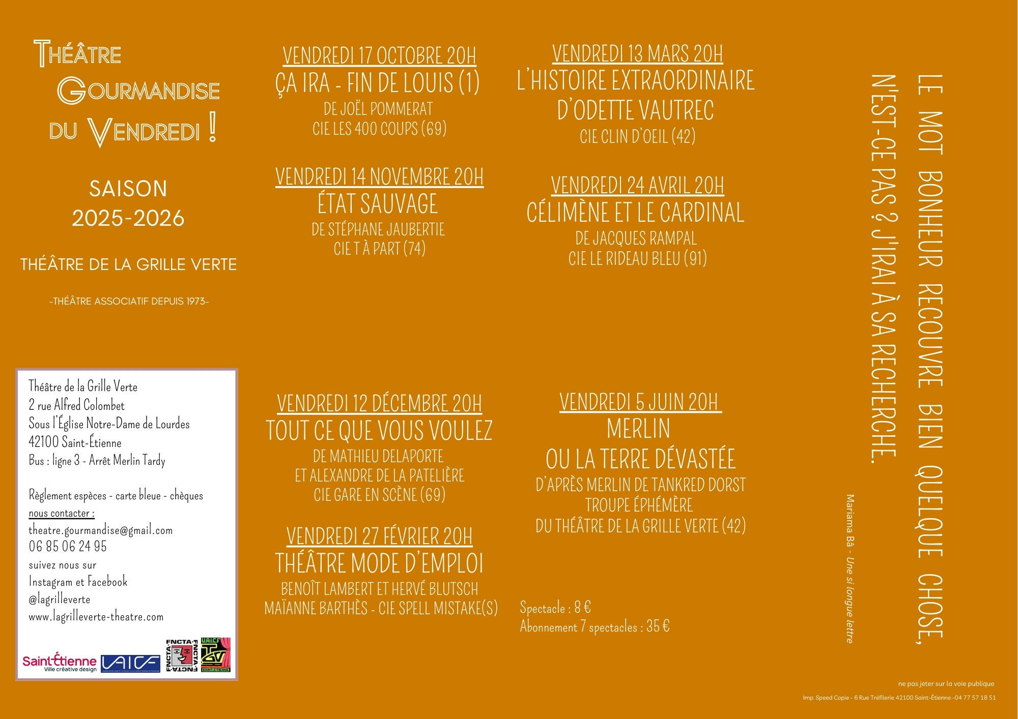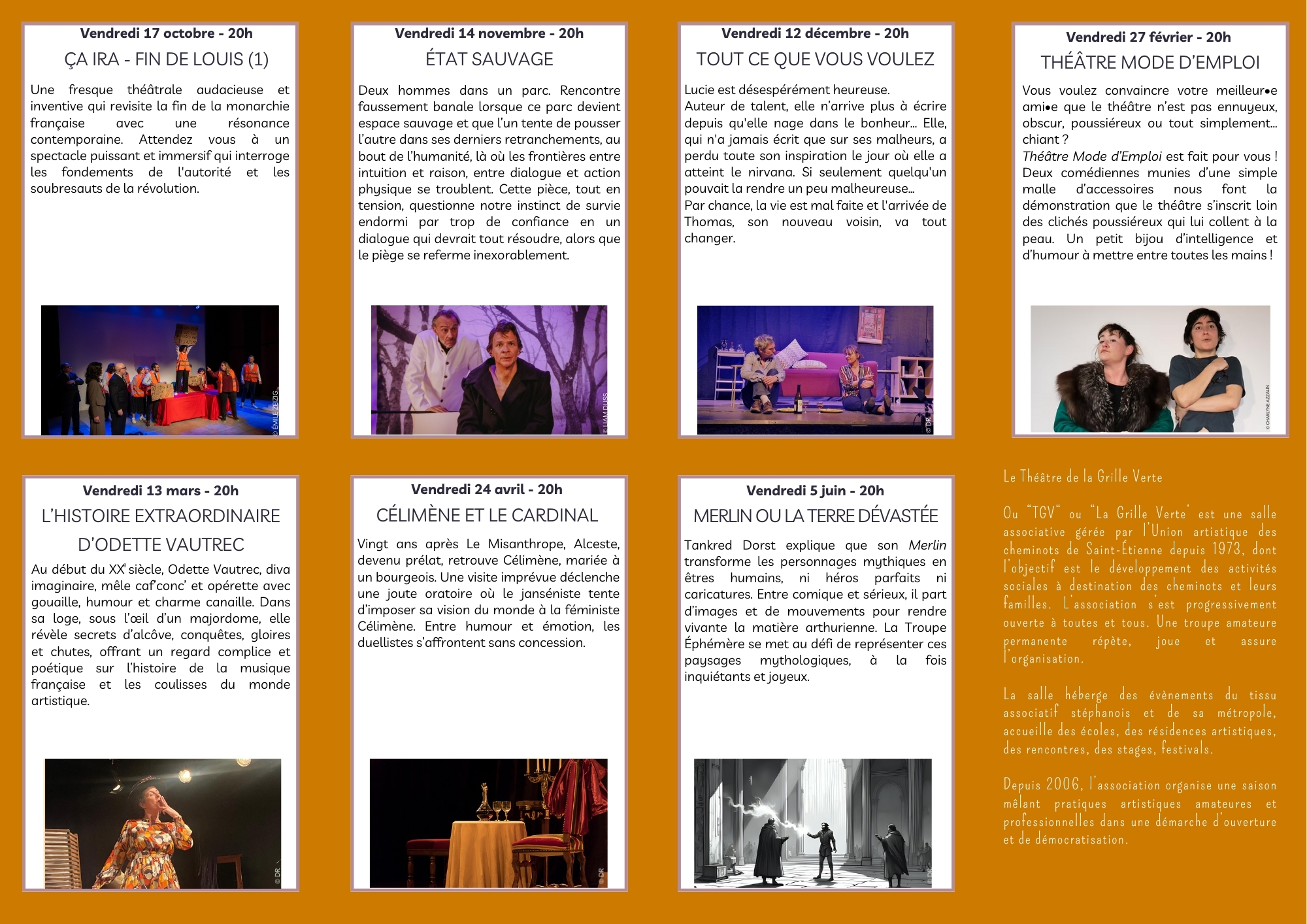 Actualités Programme de la saison Théâtre Gourmandises du Vendredi 25-26 Programme à télécharger ici : lien